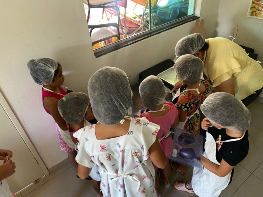 Outra ação que vem ganhando destaque é a Oficina de Culinária, uma novidade que tem atraído crianças e jovens. A iniciativa desperta o interesse pela cozinha de forma lúdica e educativa, incentivando o aprendizado, a criatividade e o desenvolvimento de habilidades importantes para o dia a dia.