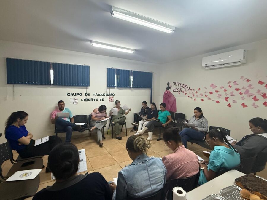 Durante a reunião, os profissionais aprofundaram o conhecimento sobre as diretrizes da política estadual, reforçando a importância do planejamento estratégico, da atuação intersetorial e da promoção de hábitos saudáveis como pilares fundamentais da Atenção Primária.